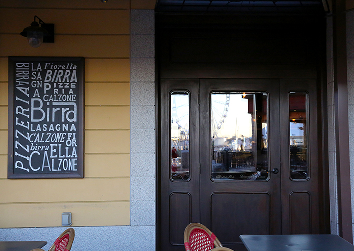 Visual Weight: Fiorella's Italian Kitchen is a restaurant located at 152 National Plaza, Oxon Hill, Maryland. The blackboard outside the door mentions food provided by the restaurant on Thursday, Feb. 16, 2017, such as birra(beer), pizze(pizza) and lasagna. (Christina Su)