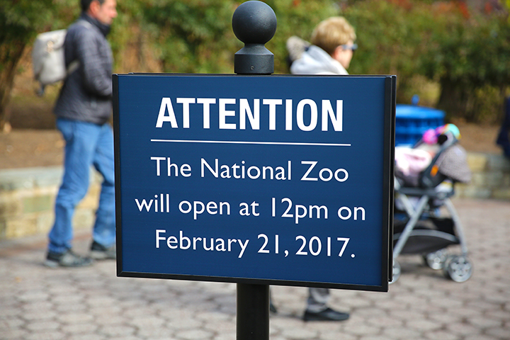 The Smithsonian’s National Zoo posts an announcement at the entrance of the Zoo on Feb. 18, 2017, noticing that the National Zoo will open at 12 p.m. on Feb 21, 2017. Bao Bao, whose name means “precious” or “treasure,” leaves from Dulles on that day. (Christina Su/American University)