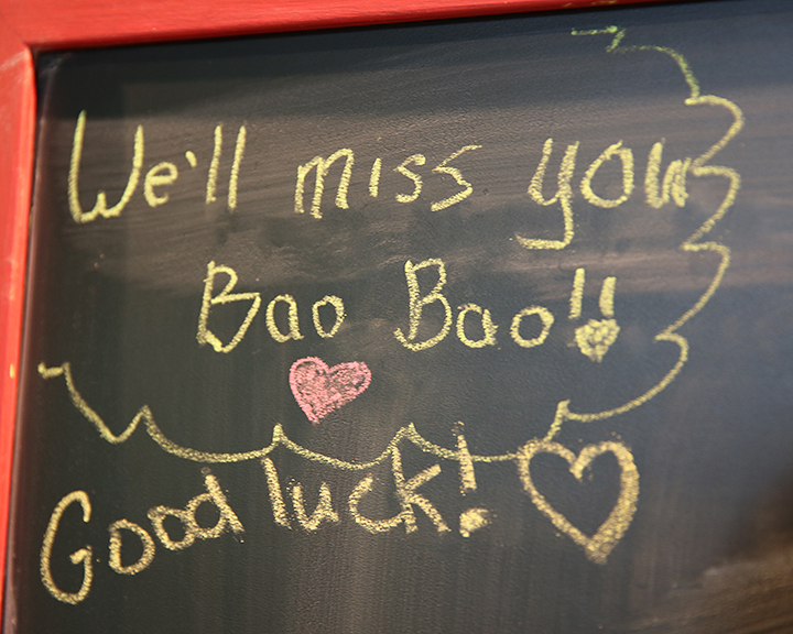 bye%e5%ad%97 February 23, 2017 Return to: Bye bye, Bao Bao!Full resolution (720 × 576) Image navigation Previous Image The girl writes “We’ll miss you, Bao Bao!! Good luck!” on the board and draws a heart at the end of the sentence. (Christina Su/American University)